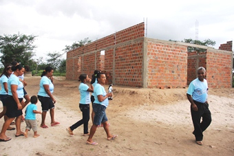 cobertura e sem piso, as celebrações e reuniões vêm acontecendo na sede